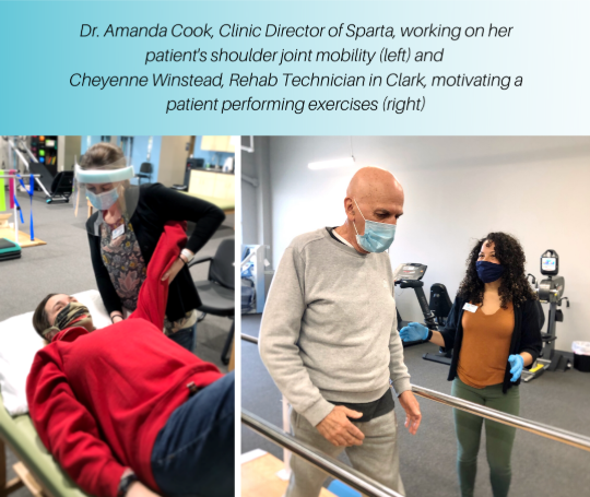 • In addition to our regular cleaning and sanitizing of all equipment and high traffic areas in gym and waiting areas throughout the day and after each patient use, we have instituted mandatory cleaning and disinfecting of the front office and entire gym space every thirty minutes.