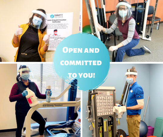 Physical therapy has been deemed an “essential service” during the COVID-19 crisis, and Trinity Rehab remains open to serve all patients who are in pain, rehabbing from surgery, or have had their elective surgeries delayed. All clinics are observing regular operating hours and are available by appointment for additional hours if necessary – contact your home office or nearest office for details. Click here to find your home clinic’s hours or the clinic nearest you.